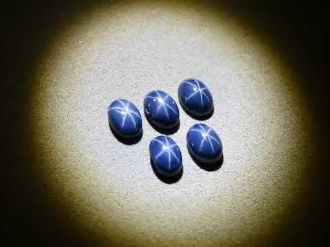 These sapphires feature mirror lusters with floating star patterns that follow the gems movement creating an exciting full cover display. They have glistening blue hues with superior lusters, and opaque bodies that amplifies their natural star effect. They measure approximately 6x4mm each, and have a Mohs hardness rating of 9 out of 10, making them perfect for jewelry. Sourced from Thailand. Diffused only.