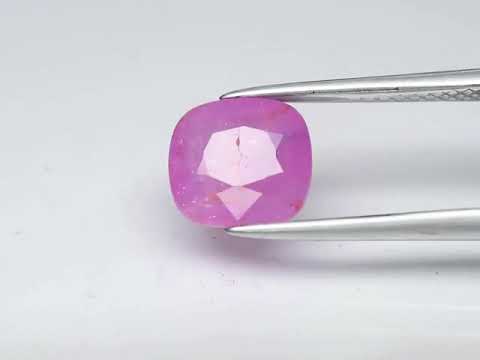 Wow! The color of this piece really pops! Cut from pure sapphire sourced from Tanzania, this unheated/ untreated gemstone exhibits a brilliant pink hue with smoky clarity that adds a beautiful glowing quality to its already bright color. It has a classic cushion cut accented by a superior luster, and measures 8mm x 7.5mm x 3.8mm. Don't miss this all natural sapphire!