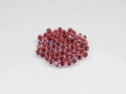 Get ready to bring your gem and jewelry collection to the next level with these boutique grade Malaya garnets! Each of these gems is single vein cut, so their color is perfectly matched, and were precision faceted with round brilliant cuts before receiving a premium polish resulting in their amazing superior lusters. You can see the light twinkling off of them in the video! The unique color of these gems presents in a rich orangy pink padparadscha hue with a slight violet undertone that deepens their color palette, and they are filled with glittering pink flashing through VVS to SI1 clarity. These 66 garnets measure 2mm each with a Mohs hardness rating of 7 out of 10 making them perfect for setting. Sourced from Madagascar. Untreated!