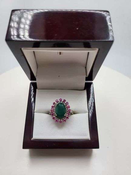 Extremely fine Victorian natural Columbian Emerald and natural diamonds ring on silver, size: 7