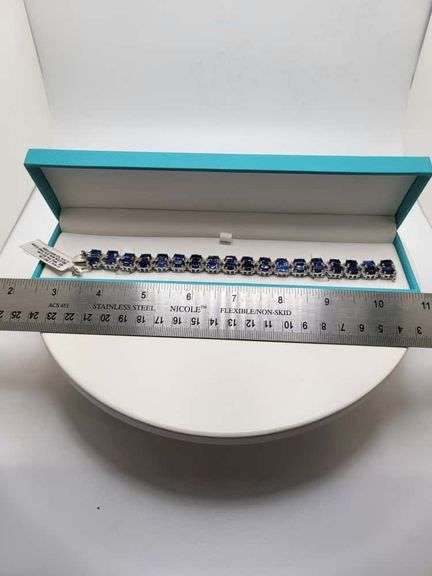 Very fine hand made 34 ctw blue sapphire  and diamond accent bracelet on silver, size: 7.5