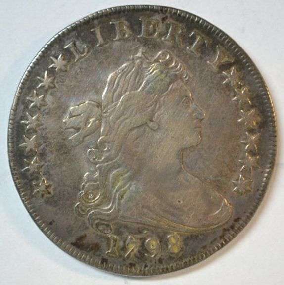 Boldly defined, XF detailed, example of this highly desirable Draped Bust Heraldic Eagle Silver Dollar from 1798. Appears to have been lightly cleaned a long time ago.