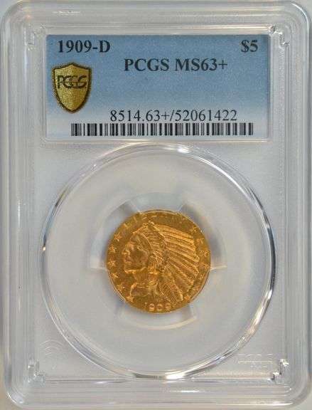 Super Choice BU PCGS MS63+ graded 1909-D $5 Indian Gold Piece. Investment quality piece!
