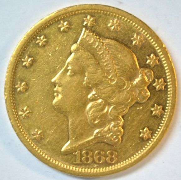Super Rare 1868 Type 2 $20 Gold Piece in near Mint (AU) with deep Prooflike surfaces on both sides. Fully struck and worth a premium, with a low mintage.