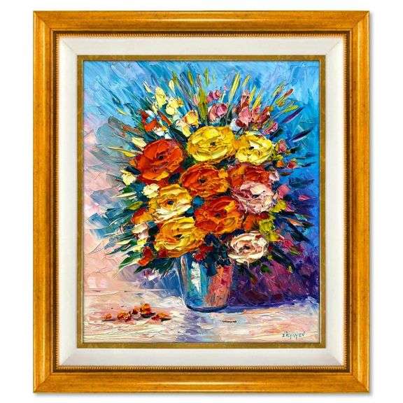 This is an original oil painting on canvas by Slava Ilyayev, hand signed by the artist. This piece comes custom framed. Includes Letter of Authenticity. Measures approx. 30.5" x 26.5" (frame), 23.5" x 19.5" (image).