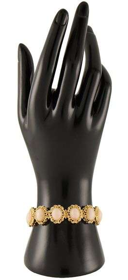 Vintage Angel Skin Coral Filigree Frame Station Bracelet in 18K Yellow gold. Coral Dimensions: Approx. 7.5 X 10.0 MM. Bracelet Width: Approx. 15.0 MM. Bracelet Length: Approx. 7.0 Inches. Weight: Approx. 36.37 Grams. Stamped: CORLET, 18K.