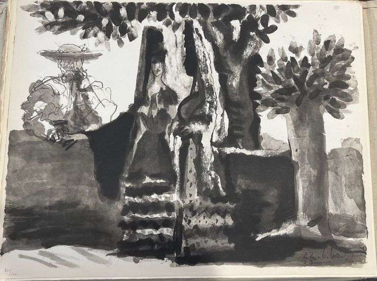 Picasso Au Baiser d'Avignon 1972 Portfolio. Lithographs not included. Wrapped original grey cloth with text from Jean Vilar. Beautifully bound with elegant fabric, limited design.