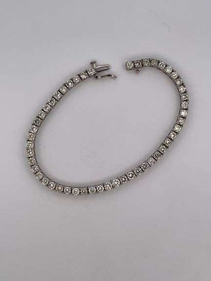 CERTIFIED 14K WHITE GOLD DIAMOND TENNIS BRACELET. IT HAS ALL NATURAL (NOT LAB GROWN) ROUND BRILLIANT CUT DIAMONDS WITH A TOTAL WEIGHT OF 7.50 CARATS. DIAMONDS ARE F-G COLOR AND VS CLARITY. BRACELET IS 7.5 INCHES LONG. HAS A TAB INSERT LOCK WITH SECURITY LOCK. GOLD WEIGHT IS 14.9 GRAMS. STAMPED 14K. IT IS IN MINT CONDITION. DIAMONDS ARE 100% NATURAL AND FULL OF LUSTER. CERTIFIED BY C.G.L, CERTIFICATE #2054306725172169. CAN BE VERIFIED AT CGL-LABS.COM