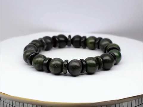 This piece is simply beautiful! It features rustic cut deep green jade with swirling saturation and rich black jade spacers. This uncommon and dramatic color combination has an elegant flair that is just as comfortable with a pair of jeans and a t-shirt as it is in evening attire. You can pair it with anything, and the best part is, this Burmese Jade bracelet is ready to wear as soon as it arrives! It has 30 pieces measuring from 9.3mm to 11.5mm, and is untreated! Sourced from Myanmar. (Formerly Burma)