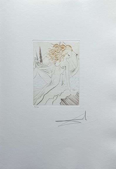 Exclusive drypoint etching on parchment paper, signed and numbered in pencil by Salvador Dali from his suite, 'Roi je t'attends à Babylone'. This work is limited to only 150 in the edition, which was published by Albert Skira/Ateliers Rigal, Paris in 1973. Comes with a certificate of authenticity and a letter from Dali authenticator, The Salvador Dali Traders. The print price guide for Salvador Dali graphics authored by Dali expert Bruce Hochman lists the retail for etchings from the "Roi je t'attends à Babylone" suite at $10,500 each.