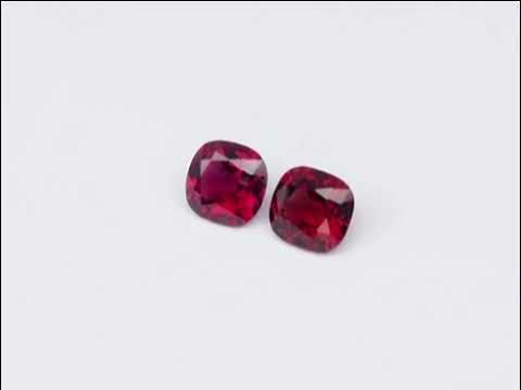 Gem and jewelry collectors alert! Ladies and gentlemen, these are the real deal. Presented here are a pair of rare Burmese spinel that exhibit rich ruby red hues with silky violet undertones, medium to strong saturation, and deep tones. These are the kind of spinels that were set in royal jewelry and thought to be rubies. And the crazy part is, they are all natural with no treatments! The cushion cuts of these gems show beautiful symmetry resulting in vibrant pops of glittering cherry red flashing, and the lusters are so highly polished that they cast decadent black cherry shadows through their bodies. And the whole display is captured in VS-VVS clarity. They are closely matched in size measure 6x5.5mm to 6x5.8mm each. Burmese spinel of this size with this level of cut, color, and clarity sell for premium prices, and these could easily cost you from $800 to $1,000 a carat before they are even set! And with a Mohs hardness rating of 8 out of 10, these aren't just seasonal gems, they are generational gems. Sourced from Myanmar. (Formerly Burma) UNTREATED!!!!!!
