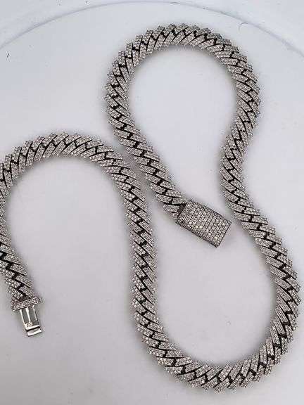 CERTIFIED 14K WHITE GOLD DIAMOND CUBAN LINK CHAIN. IT HAS ALL NATURAL (NOT LAB GROWN) ROUND BRILLIANT CUT DIAMONDS WITH A TOTAL WEIGHT OF 23.50 CARATS. DIAMONDS ARE E-F COLOR AND VS-SI CLARITY. CHAIN IS 22.5 INCHES LONG AND 11.0 MM WIDE. GOLD WEIGHT IS AN AMAZING 168.8 GRAMS. STAMPED 14K. HAS AN INSERT LOCK WITH SECURITY LOCK. CHAIN IS IN MINT CONDITION-NEVER WORN. DIAMONDS ARE FULL OF LUSTER. CERTIFIED BY C.G.L, CERTIFICATE #2081919746177977. CAN BE VERIFIED AT CGL-LABS.COM