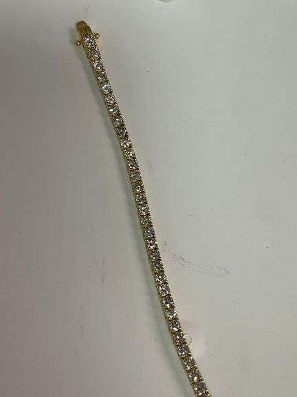 CERTIFIED BRAND NEW 14K YELLOW GOLD DIAMOND TENNIS BRACELET. IT HAS ALL NATURAL (NOT LAB GROWN) ROUND BRILLIANT CUT DIAMONDS WITH A TOTAL WEIGHT OF 5.75 CARATS. DIAMONDS ARE G-H COLOR AND VS-SI CLARITY. LENGTH IS 7 INCHES. GOLD WEIGHT IS 11.2 GRAMS. STAMPED 14K. HAS A TAB INSERT LOCK WITH 2 SECURITY LOCKS. BRAND NEW FROM JEWELRY STORE DISPLAY-NEVER WORN.CERTIFIED BY C.G.L, CERTIFICATE #2065485587177673. CAN BE VERIFIED AT CGL-LABS.COM