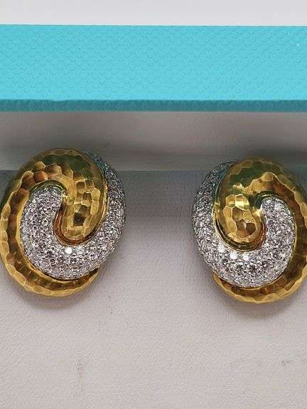 Premium 18k Gold Diamond Swirl Earrings. Weighs: 23.5 grams