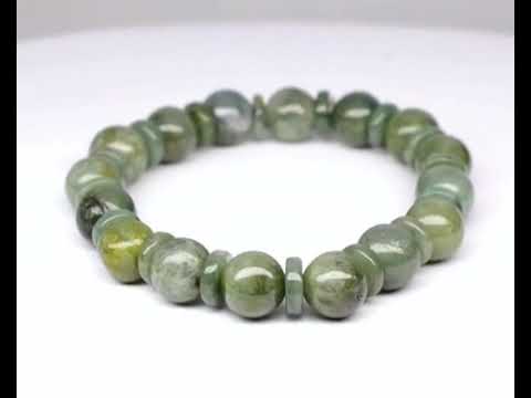Holy cow! Look at that color! The color of these jade beads is incredible. Whether seen close up or at a distance you can see that these jade posses a rich moss green hue that is both elegant and commanding with jade spacing rings that deliver multiple green hues. The bracelet consists of 32 individual pieces with the beads measuring 8.5mm to 10.5mm each, and each piece has a glossy luster that gives them the appearance of being wet. And the best part is, you can put it on your wrist as soon as it arrives! Sourced from Myanmar (formerly Burma). Untreated!