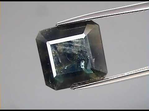 You have got to see this sapphire for yourself. It is kind of unbelievable. The first thing you will notice is the size. It's huge! And it's got a low profile cut, which makes it look huge-er-er. (For those of you without children, that means really big.) And measuring an impressive 12mm x 12mm x 6mm, this one of a kind sapphire was cut to set, and with its lower profile, you won't have to worry about this gem snagging you pockets or your purse when reach into them, which is nice. But you know it's big, after all it weighs 8.69 carats, so lets get into the color! This sapphire shows an almost black resting color with shocks of shimmering silver from abundant deposits of proustite, a mineral that develops naturally with select rubies and sapphires over millions of years. But that's only half of the story. When you hold it to the light, it instantly changes to green and blue chevrons that highlight the growth of this gem. They are well defined, and you can count the thick bands like growth rings in a tree! Its like your own private geological record captured in sapphire crystal. You can go from rich elegance to whimsical color just by holding your hand up to the light. And it's heated only! No dyes or fillers in this gemstone, just pure sapphire. Sourced from Mozambique.