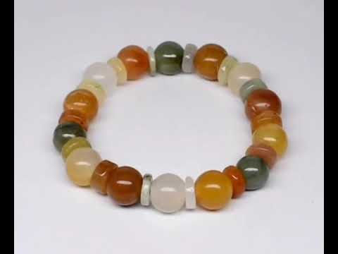 Make a statement without saying a word with this heavy 183+ carat Burmese jade bracelet! Are you the hip mom? The cool Aunt? We would say classy grandma, but you look much too young for that. Or maybe you are in your early 20's, and need a piece to wear out that you know no one else will be wearing? Either way this is the bracelet, regardless of age. You are never to old, or young, to have a good time. And that's really what this bracelet says, or more actually shouts! And really, who do you know that has an UNTREATED multi-color jade bracelet? From Burma no less! These vibrant jade pieces, both the beads AND the spacers, show gorgeous tropical colors with glistening liquid lusters that shine in the sun, or any other lighting for that matter. They have fantastic size, measuring 9.2mm to 12mm each, but are not so big as to be unwieldy. And the whole package is ready to go as soon as it gets to your house! Open it up, slip it on, and go conquer the summer!