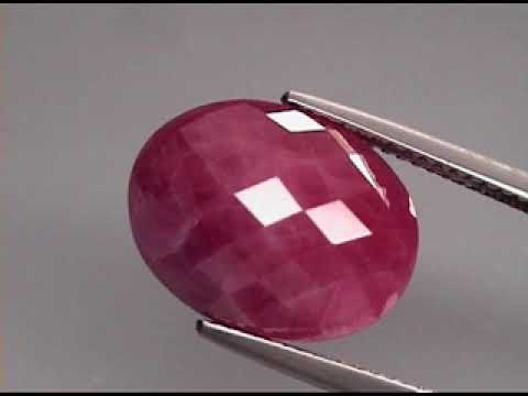 This stunning gem was cut from pure Mozambique ruby, and was heated only with no dyes or fillers. It has a strong red hue with a violet undertone giving it a beautiful depth of color, and a semi-opaque body. The double checker board cut of this piece glows under its superior luster, that twinkles off of every facet. Measuring 15.5mm x 12mm x 6.5mm, it has incredible size, and a Mohs hardness rating of 9 out of 10 making it perfect for setting.