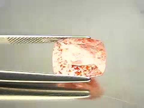 This unique variety of quartz gets its strawberry name from the rich lepidocrocite suspended through its crystal white body. It has an eye catching cushion cut with a glossy luster, and measures 11.9mm x 9.7mm x 7mm. Sourced from Mexico. Untreated.