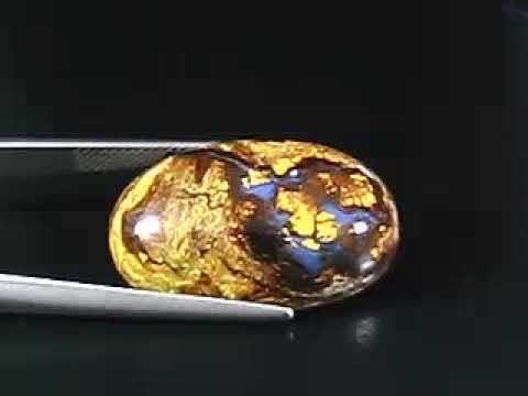 This ravishing gem features blue opal crystal held in its well marbled natural matrix. It has a natural high gloss liquid luster, and measures 25.2mm x 16.5mm x 8.2mm.This exotic gem is untreated, and was sourced from the Koroit opal fields in the Paroo shire of southwest Australia.