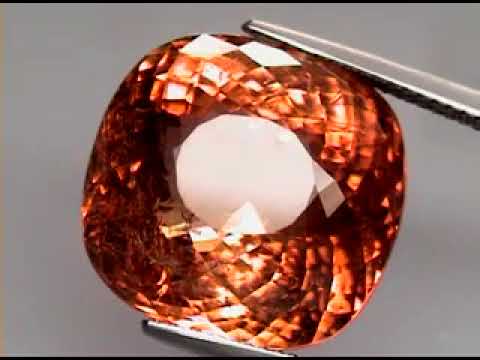 Dont miss this substantial gemstone! The boutique grade orange pink Padparadscha color of this tourmaline gets its name from aquatic lotus blossoms, and is highly sought after by gem collectors. This piece has a vibrant mix of liquid and glittering flashing for a non-stop display that is accented by a glistening superior luster. It has incredible size, measuring 17.5mm x 16.6mm x 13.5mm, and has had no treatments. Sourced from Brazil.