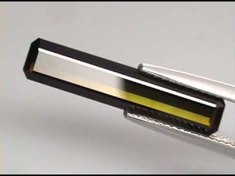 The elegant elongated emerald cut of this tourmaline is complimented by its shimmering superior luster, drawing the eye, and accentuating its deep green hue. This all natural gemstone was sourced from Mozambique, and measures an impressive 23.1mm x 5mm x 4.3mm. Mohs hardness rating: 7-7.5 out of 10