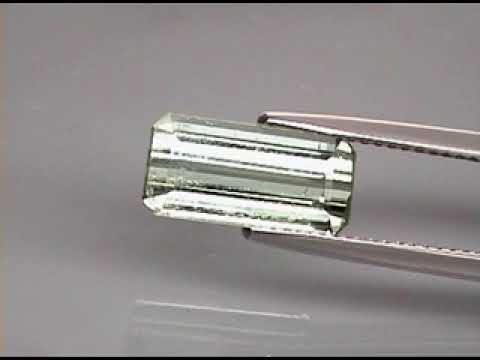 The color of this tourmaline is simply stunning. It presents a light green hue with a slight color shift, appearing more yellow in lower lighting, with strong linear flashing. It has great size, measuring 12.7mm x 6.1mm x 5mm, and has a glistening superior luster. Sourced from Mozambique. Untreated.