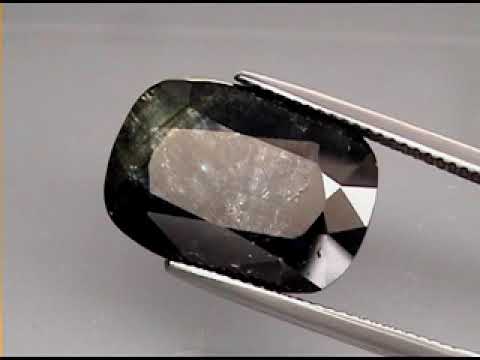 This very unique sapphire has a a two-tone color palette of opaque deep midnight blue with translucent green on one side, and a silvery sheen that highlights its crystal formation. It has a glistening superior luster that shimmers off of every facet, and measures an impressive 18mm x 12.8mm x 6mm. This example was heated only, and has no dyes or fillers. Sourced from Mozambique.