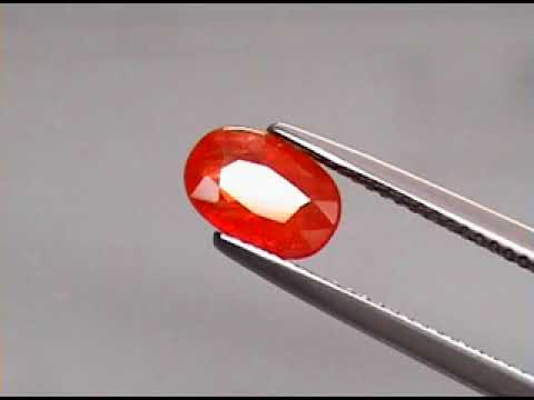 Sourced from Songea, Africa, this piece exhibits an orange red hue with rich saturation and a superior luster. It measures 8.6mm x 5.7mm x 4mm, and has a Mohs hardness rating of 9 out of 10 making it perfect for setting. Beryllium heated.