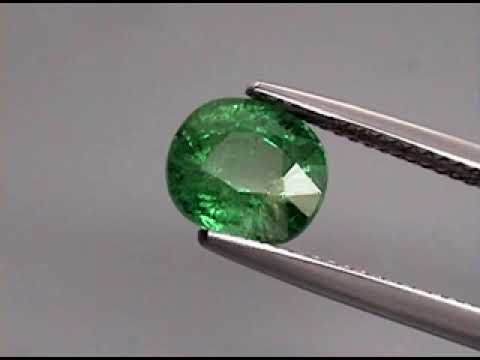 This is a rare example of this rare gem type. The outstanding color of this piece is at once rich and vivid, showing an chrome green hue with full, even saturation accented by pops of kelly green flashing. It measures 8.3mm x 7.4mm x 5.8mm, and glistens under a superior luster. Untreated. Only 10 percent of the tsavorite mined in the world is above 1 carat, with only 2.5 percent being over 2 carats. Made famous by Tiffany and Co., this very beautiful gem is held in high regard by collectors and connoisseurs and is very rare. Sourced from Kenya.
