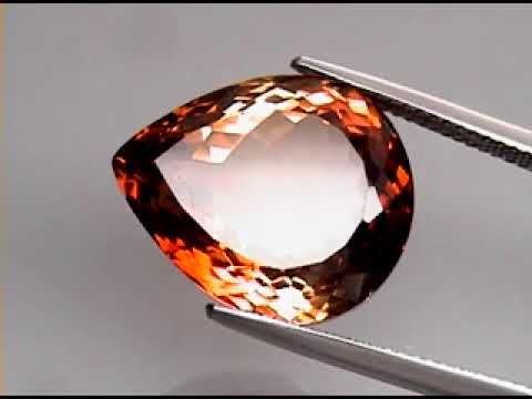 The faceting of this surrounds it with fiery confetti flashing that even glitters in low light. Its rich color flows through rich whiskey reds and golden ambers that echo through its flashing and is covered by a superior luster. This stunning gem measures 18mm x 14.7mm x 10mm and has pristine eye clarity. Sourced from Brazil.