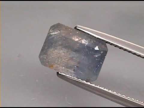 This gorgeous sapphire exhibits a bi-color hue that moves from gray to blue and is accented with a natural silvery sheen. The luster of this large gemstone glistens off of every smooth cut facet giving it the appearence of being wet. It measures an impressive 10.9mm x 7.8mm x 5mm, and has received no treatments.