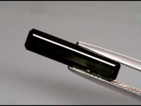 This superb natural tourmaline exhibits full color saturation with a dark tone, silky luster, and rich dark green hue. The combination of its elongated emerald cut and arrow straight faceting makes this gemstone a natural choice for an elegant evening setting. It measures 19.6mm x 4.5mm x 3.2mm, and is unheated. Sourced from Mozambique.