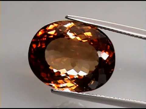 This is a gorgeously colored example of Brazilian topaz. It has a deep whiskey red hue mixed with rich amber and swirling saturation through eye clarity. Its oval cut creates brilliant glittering flashing, and its fire is amplified by its superior luster. This impressive topaz measures 17.8mm x 14.4mm x 11mm, and has a Mohs hardness rating of 8 out of 10.