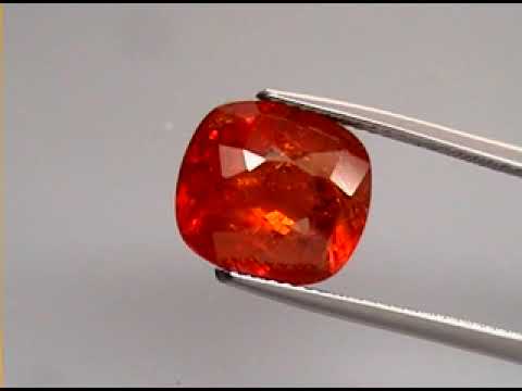 This very large example displays a stunning red orange hue with strong saturation and smokey translucency. The luster of this piece glistens across every smooth cut facet, and it exhibits vibrant pops of glittering flashing. Measuring 11.2mm x 10.1mm x 6.8mm it has great size, and a Mohs hardness rating of 7.5 out 10. Soured from Nigeria. Untreated.