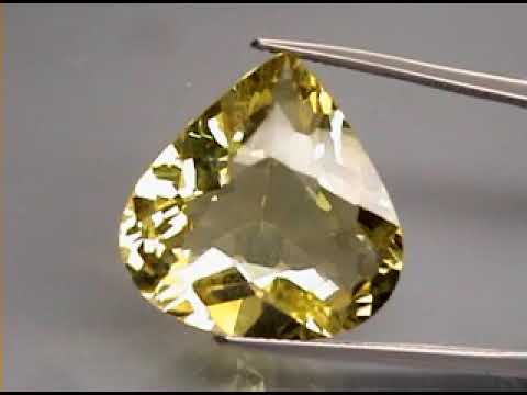 This gemstone is simply breathtaking. Cut from pure Brazilian citrine, it exhibits pristine VS clarity with a vivid canary yellow hue, and high polished superior luster. The gorgeous pear cut of this piece is dramatic, using its superb faceting and symmetry to create layered full body flashing for a high fire display. This substantial gem measures 16mm x 16mm x 10.3mm, and is untreated. The cut and finish of this piece is to die for!