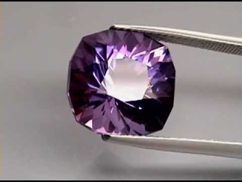 This breath-taking gem is well cut with tight faceting, and has velvety color saturation with a mix of crisp concave flashing and glittering confetti flashing. The AAA cut and superior luster of this piece cast shadows through it, influencing the color, and giving it shades of silky royal purple that flow through its rich purple hue. Its flash palette sparkles in fiery pinks and lavenders, enhanced by its pristine VS clarity. This very beautiful gem was sourced fom Bolivia, and measures 12.8mm x 12.6mm x 9.5mm. UNHEATED!