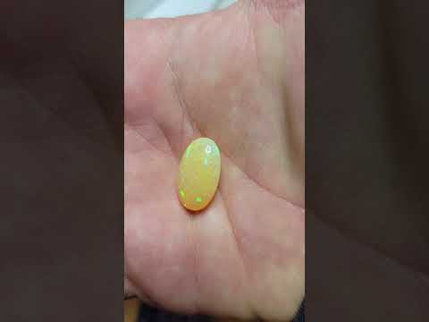 Don't let the pictures of this rare opal fool you, in hand this opal comes alive with crisp muli-color flashing in a full body honeycomb pattern that glitters like a rainbow disco ball. Each of the multiple well defined pops of color glow with electric intensity, showing greens and reds with orange and gold highlights and touches of blue under a glistening liquid luster. It has impressive size, measuring a whopping 20.3mm x 12.4mm x 7.7mm, and a semi-black hue that really makes its flashing stand out. Don't miss this untreated Welo opal!