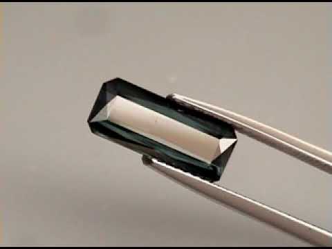 This superb natural tourmaline exhibits full color saturation with a dark tone, silky luster, and rich gray blue hue. The combination of its elongated scissor cut and arrow straight faceting makes this gemstone a natural choice for an elegant setting. It measures an impressive 12.5mm x 5.3mm x 3.6mm, and is unheated. Sourced from Mozambique.