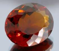 It presents a deep madeira hue with rich even saturation. The well cut body produces brilliant flashing with whiskey and amber tones, while its superior luster casts deep chocolate shadows that swim through its movement. This citrine was crafted under labratory conditions, and was chosen for its gorgeous color and outstanding clarity before being precision faceted. It measures 24mm x 19.8mm x 11.9mm.