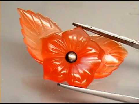 Don't miss this amazing piece. The pedals of the flower are polished to give them a glistening appearance while the light streams through its translucent body. The vibrant orange hue has naturally swirling saturation giving it a unique color palette, and it is crowned with a natural star sapphire in the middle. It measures an impressive 38.4mm x 18.8mm x 8.5mm, and was sourced from Mexico. Untreated.
