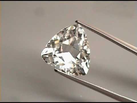 This exceptional gem was cut from pure Brazilian topaz, and presents a truly gorgeous diamond white hue with no color undertone through excellent VS clarity. Every facet of this trillion cut piece is accented by its superior luster, and it is filled with glittering flashing creating a captivating display. It measures 14mm x 13.2mm x 7.8mm, and with a Mohs hardeness rating of 8 out of 10, it is perfect for setting and everyday wear.