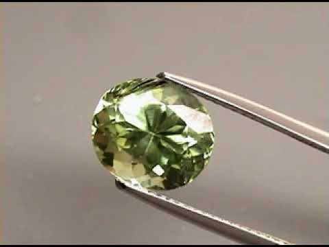 The light saturation and superior luster makes for a gem that's understated, yet beautiful. It presents a spring green hue with a glittering mix of lime and mint green flashing, and a very unique set of rutile needles on one edge. This is a fully natural peridot, with no treatments of any kind. It was sourced from Pakistan, and measures 10.3mm x 9mm x 6.8mm.