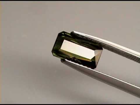 The elegant scissor cut of this tourmaline is complimented by its shimmering superior luster, drawing the eye, and accentuating its deep green hue. This all natural gemstone was sourced from Mozambique, and measures an impressive 9mm x 5mm x 3mm. Mohs hardness rating: 7-7.5 out of 10