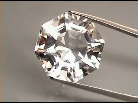 The colorless hue of this gem grade quartz works beautifully with its wide faceted octagon cut, resulting in brilliant nonstop layered flashing enhanced by its superior luster. This gorgeous piece measures an impressive 15.5mm x 15.5mm x 10mm, and is untreated. Sourced from Brazil.