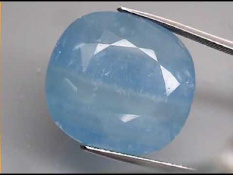 This gem is big, bold, and beautiful. Its naturally frosted body creates a semi-translucency that enhances its color palette and gives it a glowing effect. It has a sea blue hue with rich, even saturation, and a superior luster that glistens off of every facet. Measuring 21.6mm x 20mm x 11.9mm, this well cut collectors gem has incredible size, and with its unique color is sure to turn heads. Sourced from Brazil.