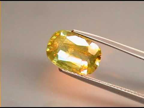 This untreated sphene features a light shift in color, with a golden yellow hue in ordinary lighting with an added orange tint from its brilliant rainbow spark, creating an easy to observe bi-color palette. The pictures make the colors look flat, but in hand this gem is alive with light and color, displaying continuous pops of flashing that is filled with vibrant reds, yellows, and greens. It measures 8.5mm x 6.2mm x 4.3mm. Sourced from Russia.