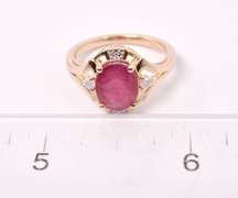 Beautiful 3.19CTS Ruby and 0.11CTW Diamond Ring in Gold Plated Sterling Silver