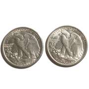 1945 1946 Frosty White Gem BU Walker Half. Nice solid gems with good dress lines and just some wear on high areas on the front leg. Not checked for variations
