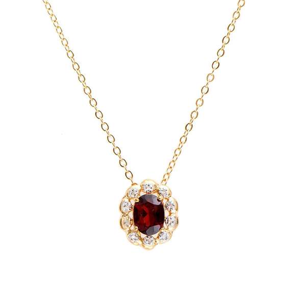 Plated 18KT Yellow Gold 1.28cts Garnet and Diamond Necklace - U.S. Auction Brokers